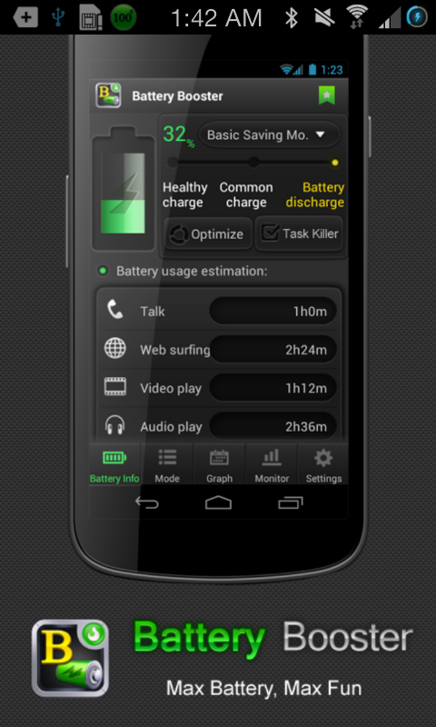 Battery Booster is an all-in-one battery boosting and power management tool for both Android smartphone and tablet. It provides the most accurate battery information, keeps track of the recent battery changes, monitors battery-draining processes, and helps you deal with various battery wasting situations at ease.